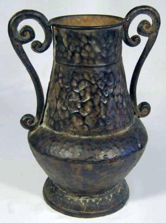 Ta efektowna amfora z metaloplastyki w kolorze brązowym to wyjątkowy element dekoracyjny, który doskonale wzbogaci każde wnętrze. Jej starannie wykonane uszy oraz kuty wzór nadają jej elegancji i charakteru, sprawiając, że jest nie tylko praktycznym, ale także estetycznym dodatkiem.