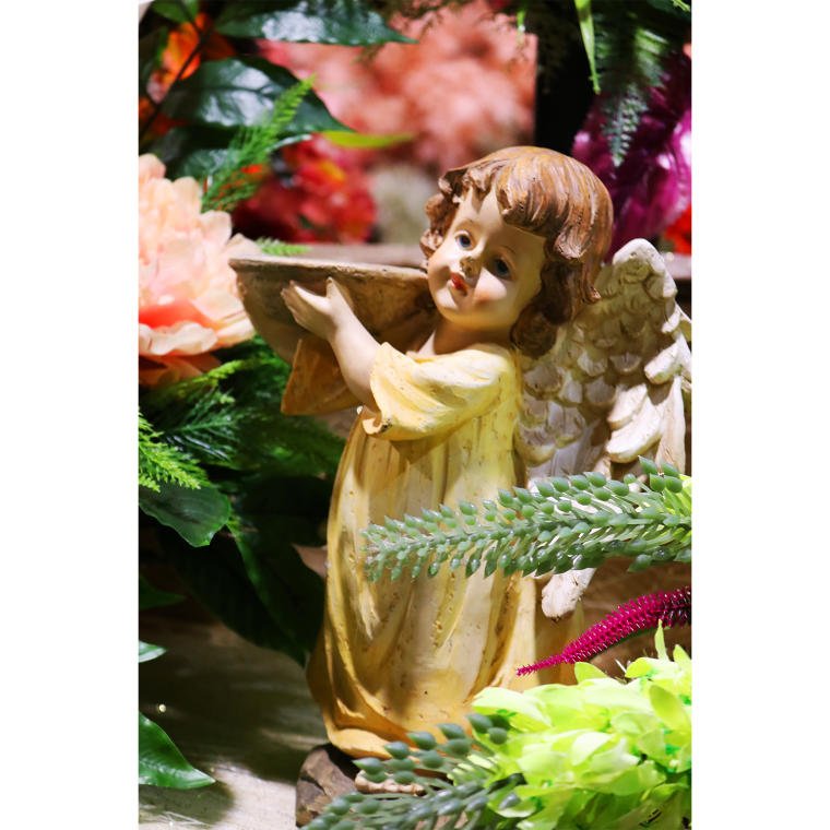 Anioł symbolizujący czystość i niewinność to idealna dekoracja, która doda uroku każdemu wnętrzu oraz doskonały pomysł na prezent. W pięknej, kremowej szacie, ten anioł trzyma podstawę, idealną do umieszczenia świecy tealight lub innej roślinnej dekoracji, co czyni go wszechstronnym dodatkiem do Twojego domu.