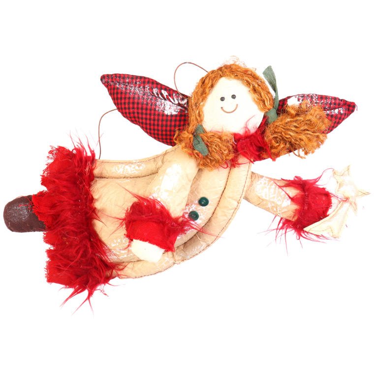 Anioł do powieszenia z naturalnych materiałów w kolorze czerwonym