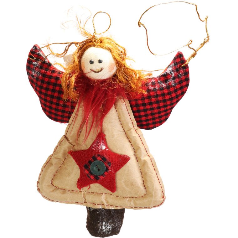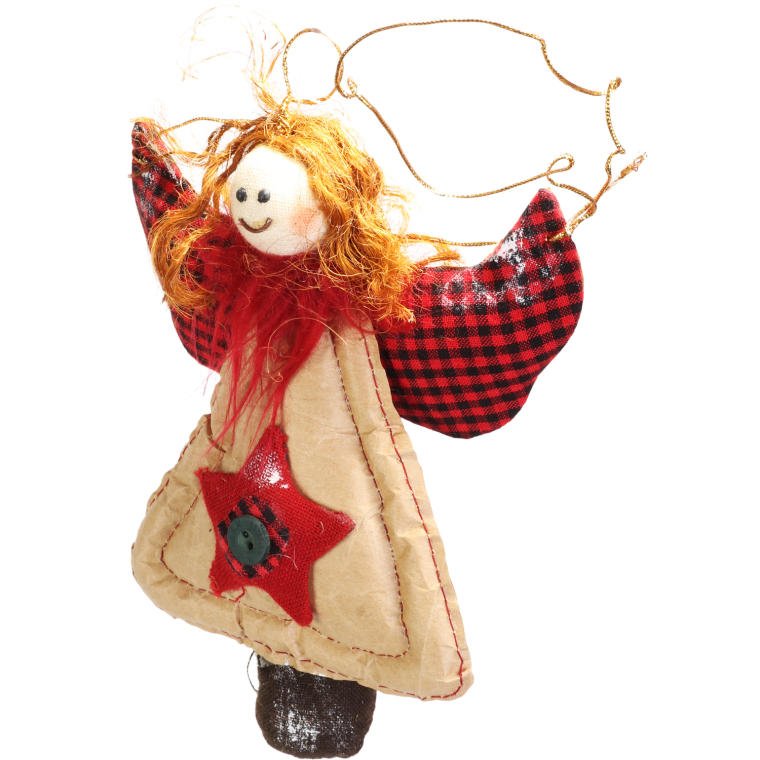 Anioł do zawieszenia, z naturalnych materiałów, czerwony, 17 cm