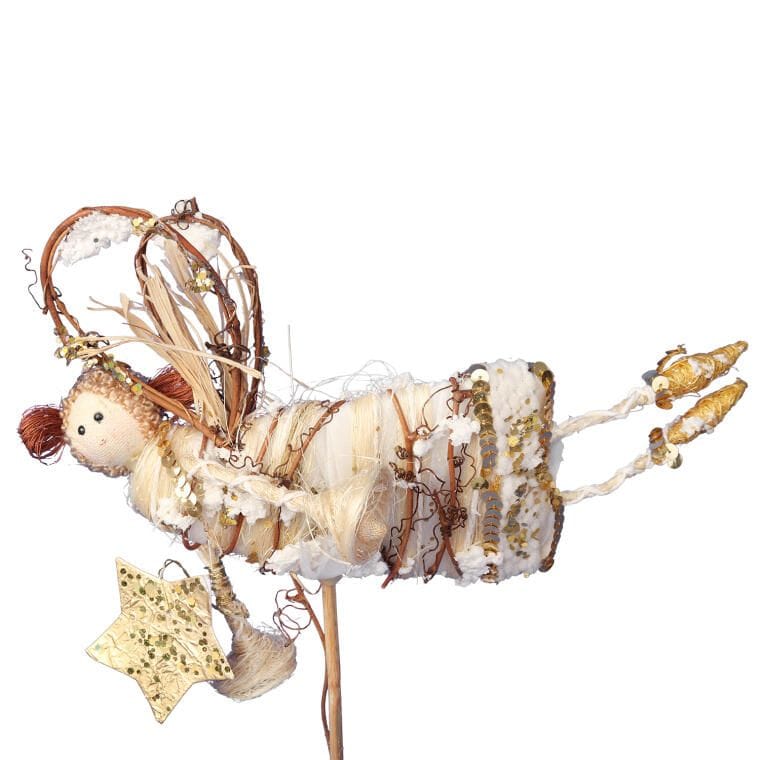 ANIOŁ FIGURKA STOJĄCA Z SIZALU I GAŁĄZEK 34 CM