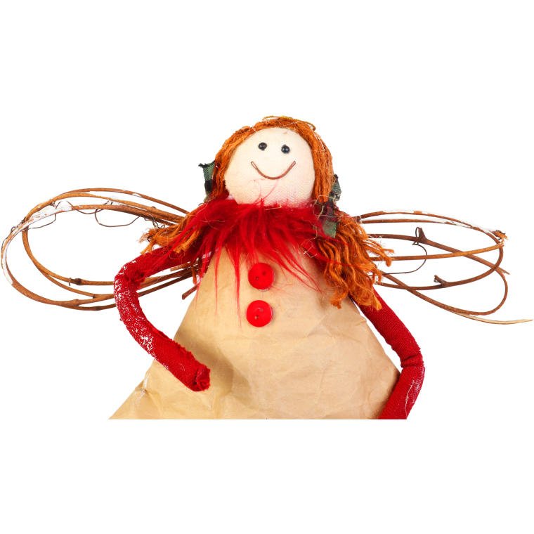 Anioł świąteczny z naturalnych materiałów w kolorze czerwonym 38 cm