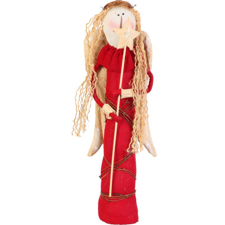Anioł świąteczny z naturalnych materiałów w kolorze czerwonym 47 cm