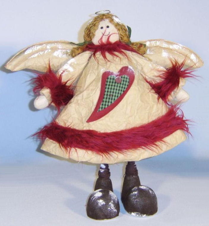 Anioł w Futrzanych Butach Beżowo-Czerwony: Rękodzieło z Papieru, Płótna i Sznurka