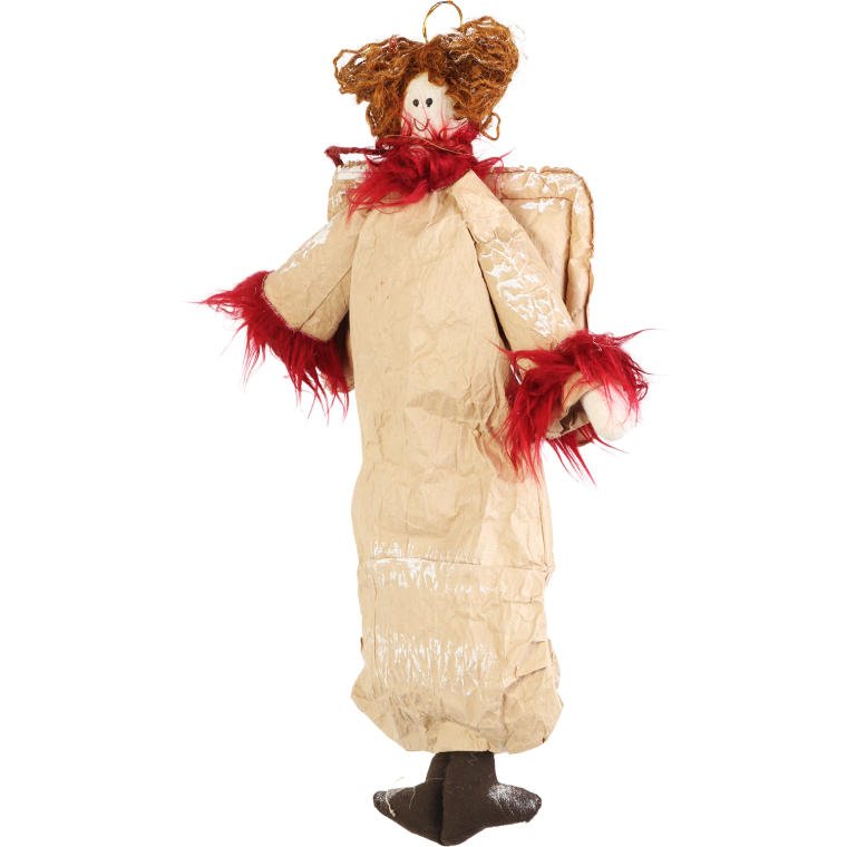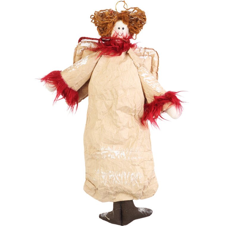 Anioł wiszący wykonany z naturalnych materiałów w kolorze czerwonym 45 cm