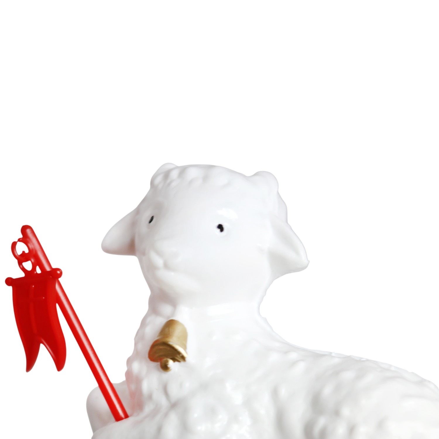 Uroczy baranek wielkanocny, to doskonała ozdoba na Wielkanoc. Wykonany z trwałego tworzywa sztucznego (plastiku), baranek z czerwonym sznureczkiem i wstążką doda świątecznego uroku Twojemu koszyczkowi, święconce lub dekoracjom na stole- idealnie wpisuje się w wielkanocną tradycję, symbolizując radość i nadzieję w tym wyjątkowym czasie.