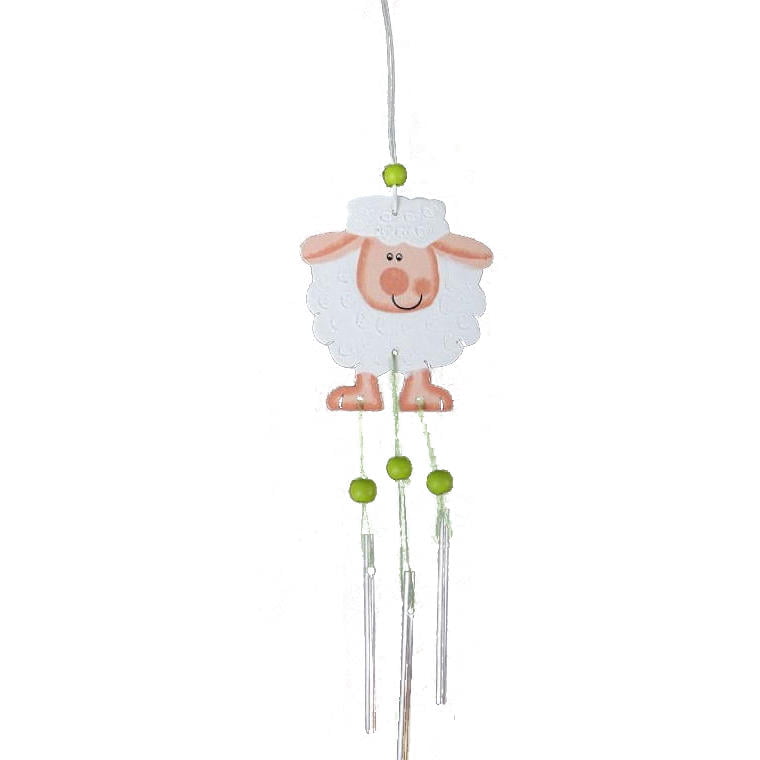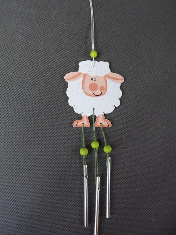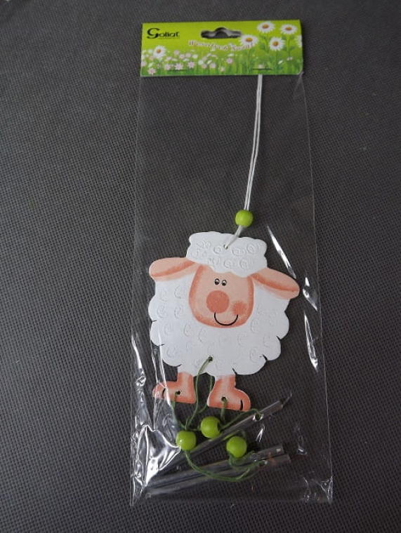Baranek z Dzwoneczkami – Zawieszka Drewniana, Biały