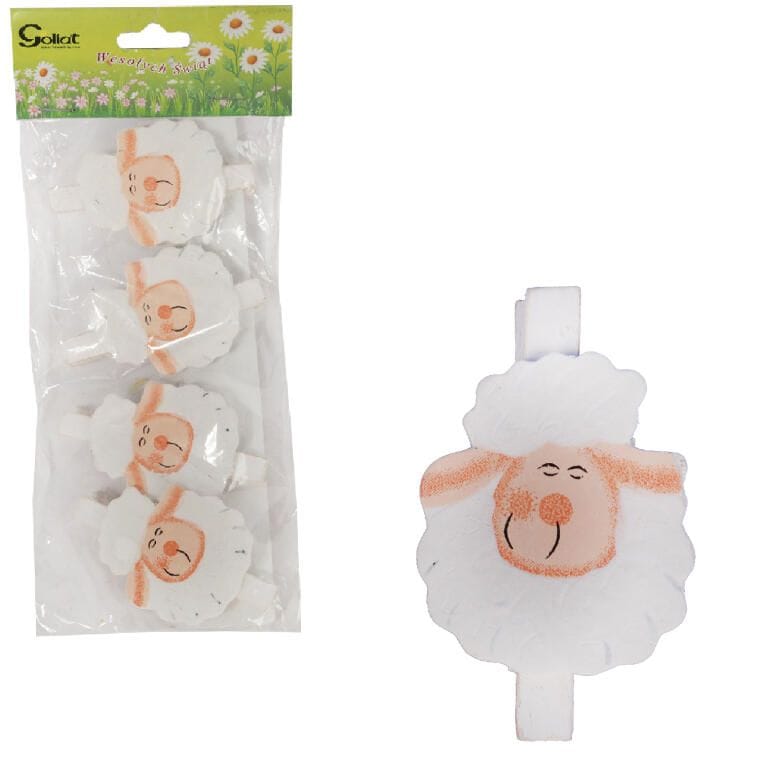 BARANKI KLAMERKI DREWNIANE 4SZT 7.5 CM WIELKANOC WIOSNA