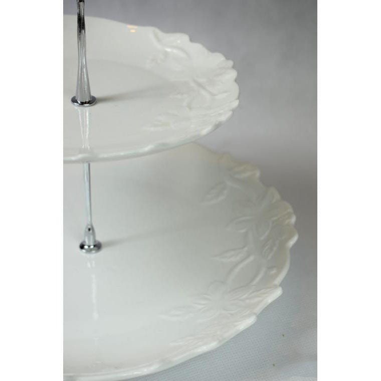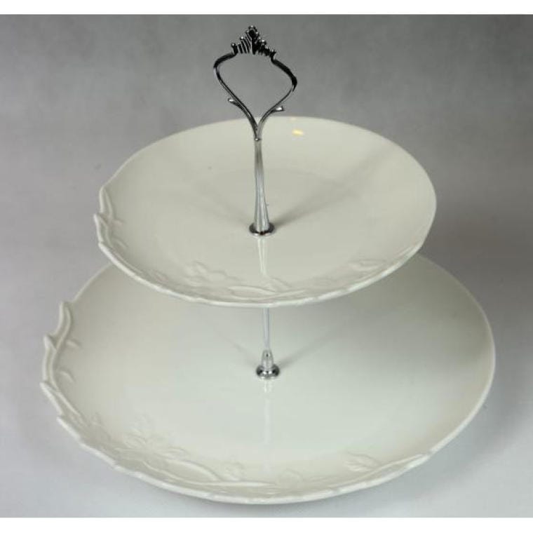Biała Dwupiętrowa Patera z Uchwytem na Ciasta i Słodycze