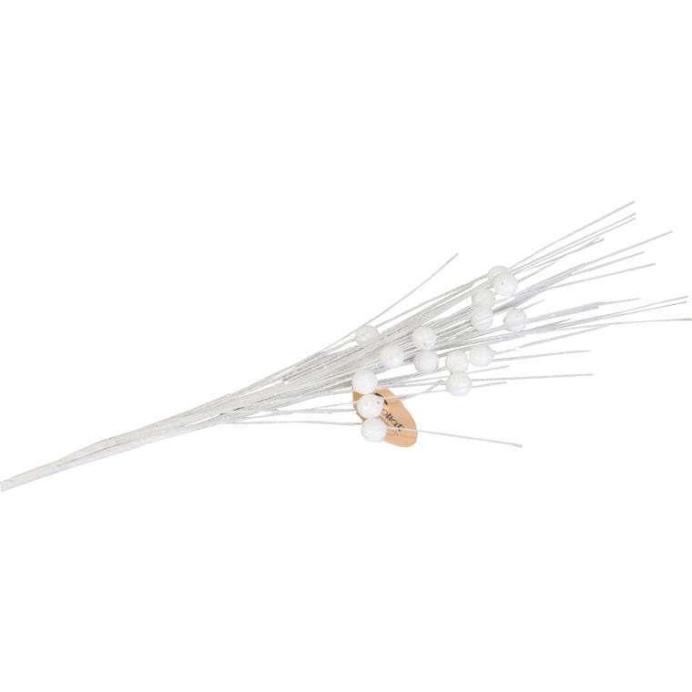 Biała Gałązka Dekoracyjna z Brokatem i Kulkami 77cm