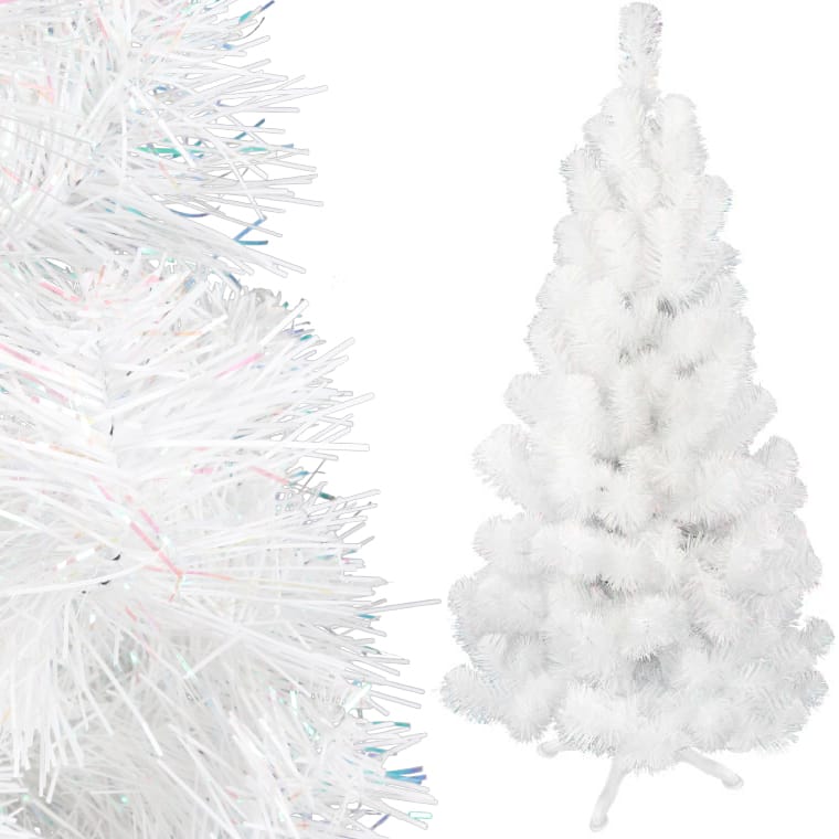 Biała HOLO choinka świerkowa na plastikowej podstawie 180 cm