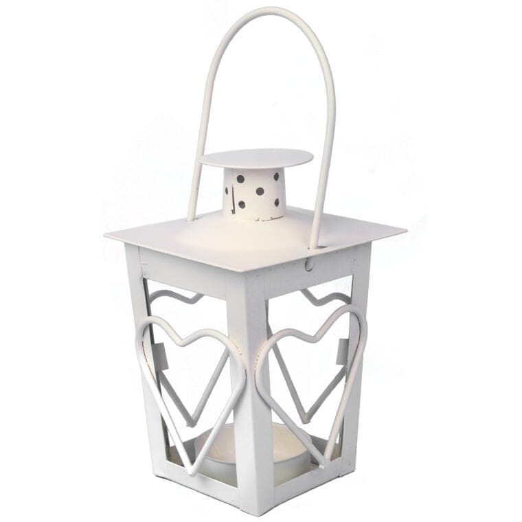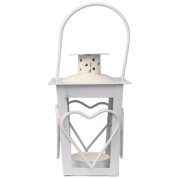 Biała Metalowa Latarenka z Motywem Serca na Świeczki Tealight 12 cm