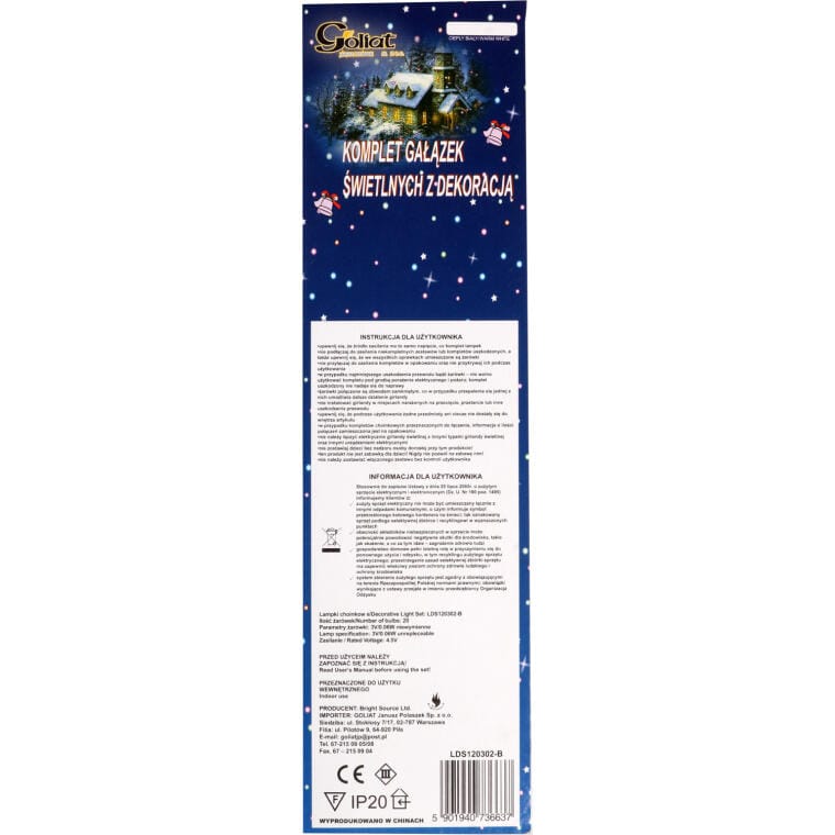 Gałązki z 30 LED to wyjątkowa dekoracja świetlna, która idealnie nadaje się do użytku wewnątrz pomieszczeń, dodając ciepłego, białego światła każdemu wnętrzu. Dzięki zastosowaniu energooszczędnych diod LED, produkt wyróżnia się wysoką efektywnością energetyczną, a jego przezroczysty kabel sprawia, że doskonale komponuje się zarówno z białymi, jak i kolorowymi ozdobami świetlnymi. Lampki spełniają surowe Europejskie Standardy Bezpieczeństwa, co gwarantuje niezawodność i długotrwałe użytkowanie. Przepalenie jednej diody nie powoduje wygaśnięcia całego zestawu, co zapewnia dodatkową trwałość. Zasilane prądem o napięciu 230V~50Hz, gałązki mają długość 120 cm i są wyposażone w miedziane przewody zgodne z normami europejskimi, co podkreśla jakość wykonania i bezpieczeństwo użytkowania. Lampki LED od firmy GOLIAT, z ponad 30-letnim doświadczeniem na rynku polskim, to gwarancja solidności, niezawodności oraz eleganckiego wyglądu, który idealnie wkomponuje się w każde wnętrze, tworząc przytulny i świąteczny nastrój.