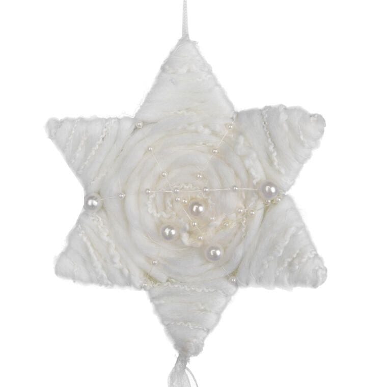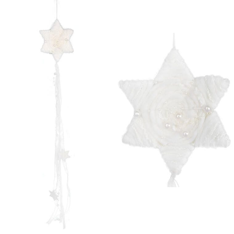 BIAŁA ZAWIESZKA DEKORACYJNA GWIAZDA Z WŁÓCZKI 70 CM