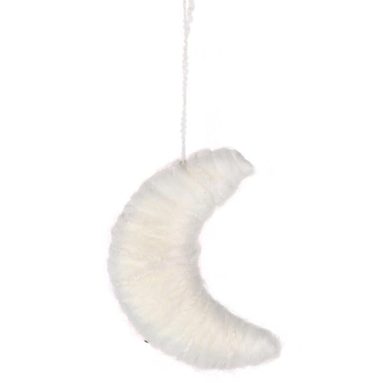 BIAŁA ZAWIESZKA DEKORACYJNA KSIĘŻYC Z WŁÓCZKI 13 CM