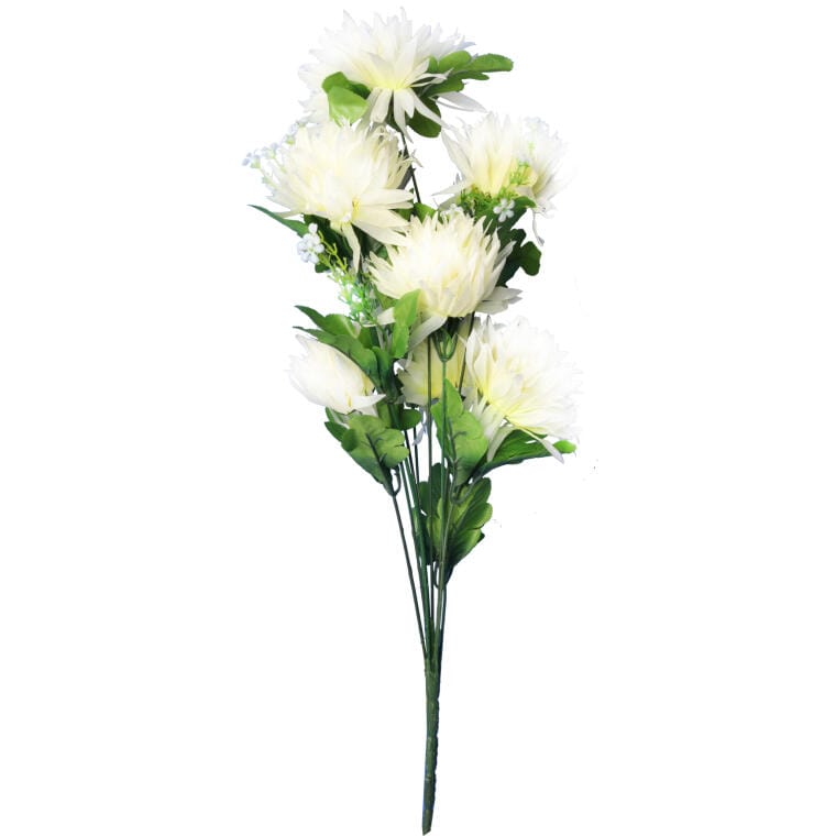 Biały Bukiet Sztucznych Chryzantem z Dodatkami – Dekoracja na Wszystkich Świętych