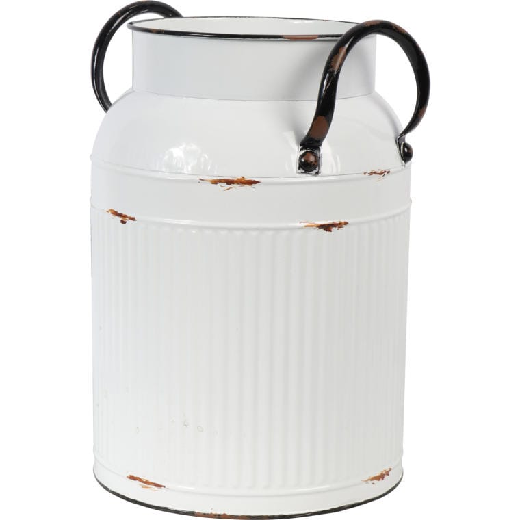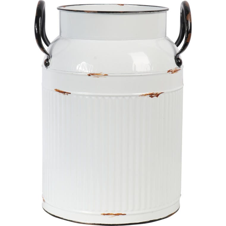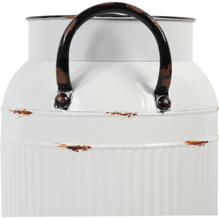 Biały Metalowy Wazon Kanka w Stylu Vintage z Efektem Postarzenia