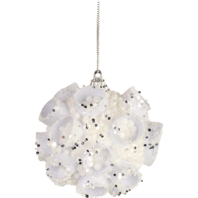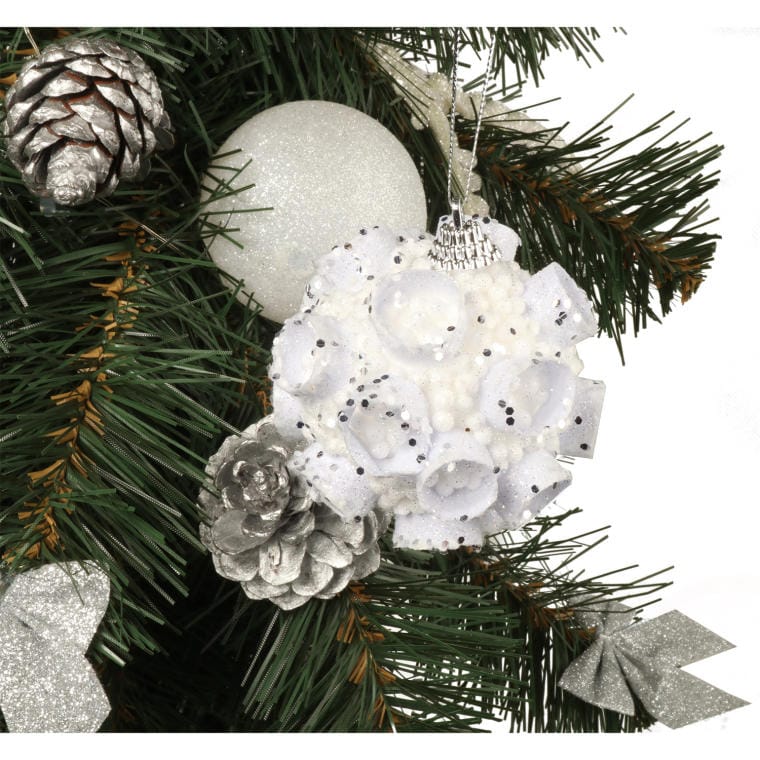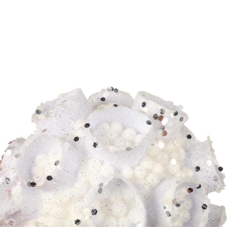 Bombka Styropianowa w Kolorze Białym ze Srebrnym Brokatem, 8 cm