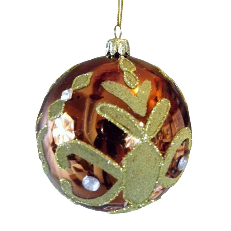 Bombka Szklana 9cm – Rudy Kolor z Brązowo-Złotą Dekoracją i Szkiełkami