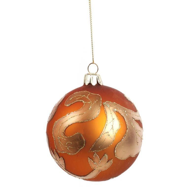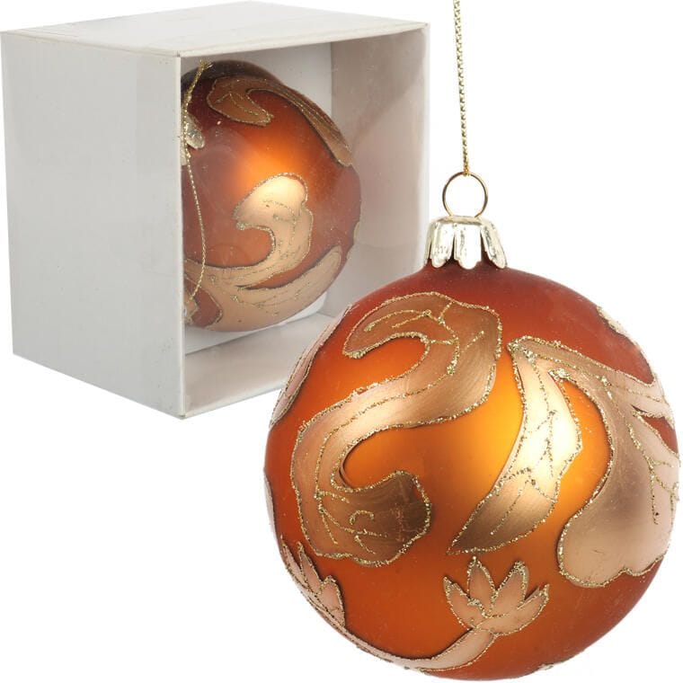 Bombka szklana dekorowana złotym brokatem, 8 cm, kolor pomarańczowy