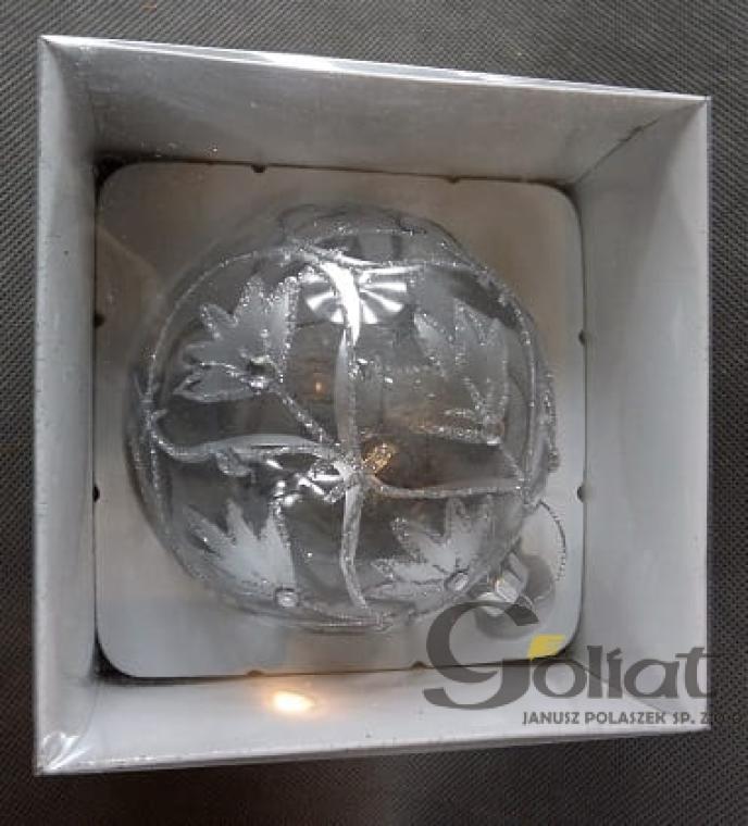 Bombka szklana, przezroczysta ze srebrną dekoracją i szkiełkami, to elegancka dekoracja, która idealnie wpasuje się w świąteczny klimat każdego wnętrza. O 9 cm, ta bombka nadaje się do zawieszenia na choince, nadając jej subtelnego blasku i wyjątkowego charakteru. Przezroczysta struktura bombki pozwala na efektowne pojawienie się światła, co sprawia, że staje się centralnym wykonawczym.