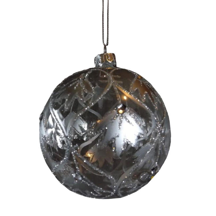 Bombka szklana przezroczysta ze srebrną dekoracją i szkiełkami