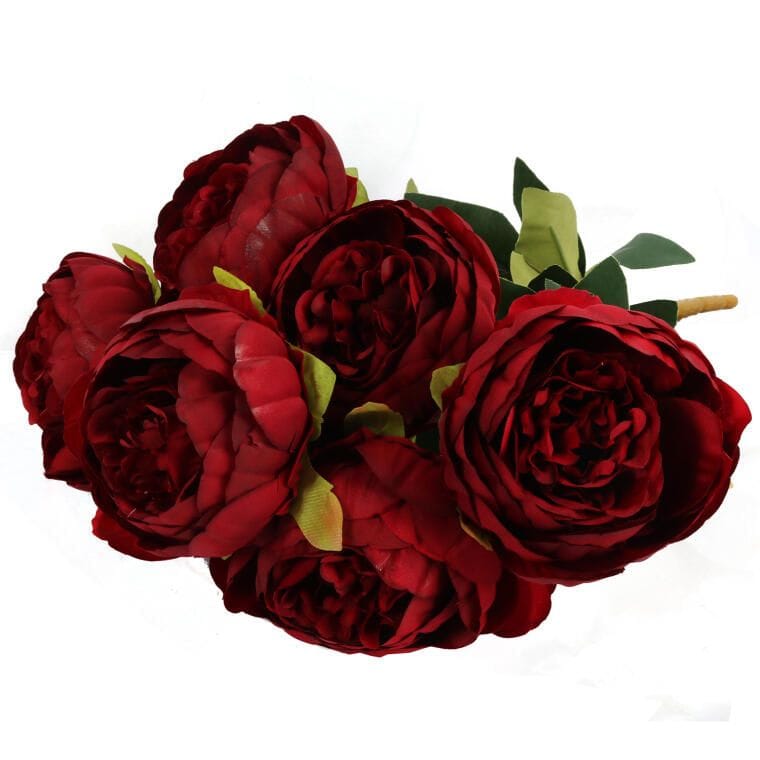 Bordowy Bukiet Sztucznych Piwonii – 7 Sztuk, Wysokość 48cm