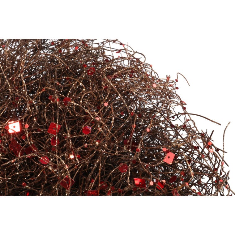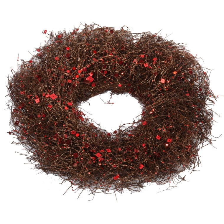 O wielkości 35 cm, ten stylowy wianek będzie idealnym akcentem na drzwiach, stołach czy ścianach, wprowadzając ciepło i przytulność do każdego wnętrza. Jego naturalny brązowy kolor w połączeniu z żywymi czerwonymi cekinami tworzy harmonijną kompozycję, która przyciąga wzrok i dodaje świątecznego blasku.