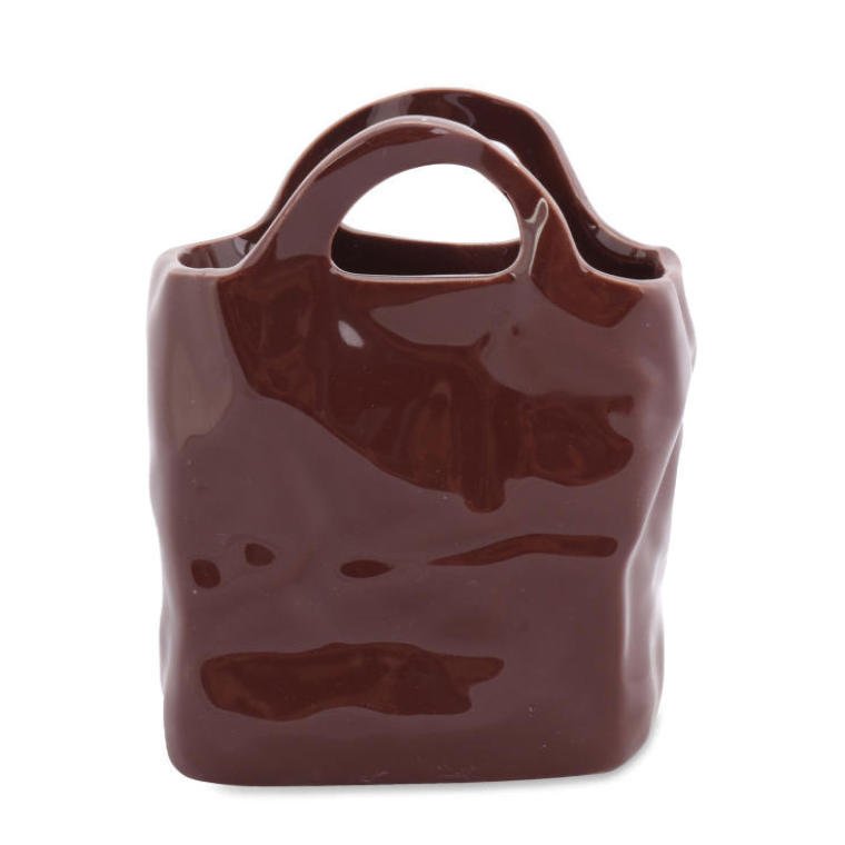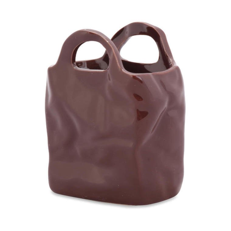 Brązowy Wazonik Dekoracyjny o Niebanalnym Kształcie z Podkładkami Antypoślizgowymi