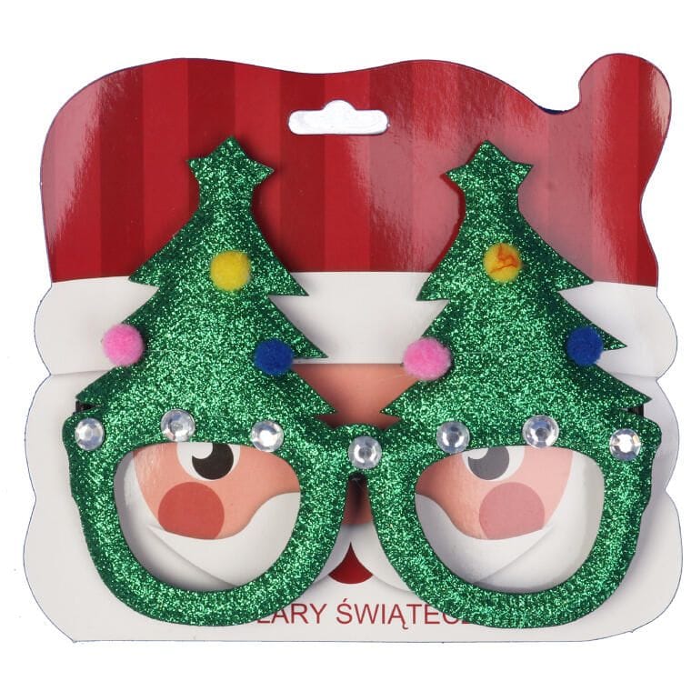 Brokatowe Okulary Świąteczne w Kształcie Choinki