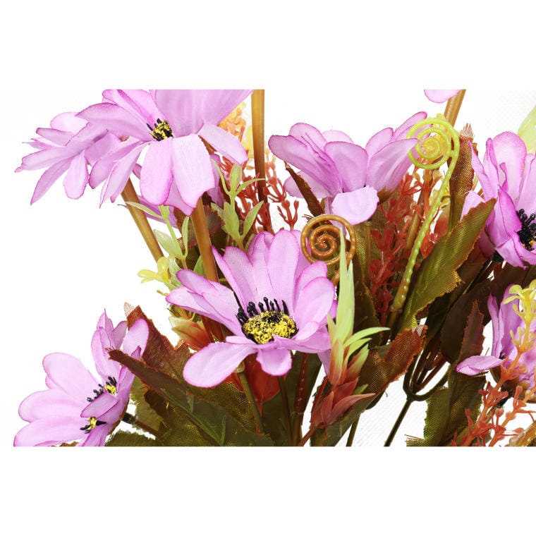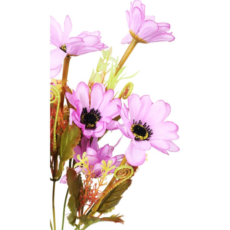Bukiecik dwunastu wrzosowych margaretek z dodatkami w odcieniach jesieni to zachwycająca kompozycja, która łączy delikatność wrzosowego koloru z ciepłymi, sezonowymi akcentami. Wrzosowe margaretki symbolizują harmonię i spokojne piękno, a ich subtelny odcień doskonale komponuje się z jesiennymi barwami, takimi jak złote, brązowe i czerwone dodatki, które przywołują na myśl urok jesiennego krajobrazu. Bukiecik o wysokości 28 cm jest idealnym wyborem na dekorację stołu, biurka lub jako uroczy prezent, który doda wdzięku każdemu wnętrzu. Ta kompozycja harmonijnie łączy w sobie naturalny urok kwiatów z ciepłem jesiennego sezonu, wprowadzając do przestrzeni atmosferę spokoju, elegancji i radosnego nastroju.