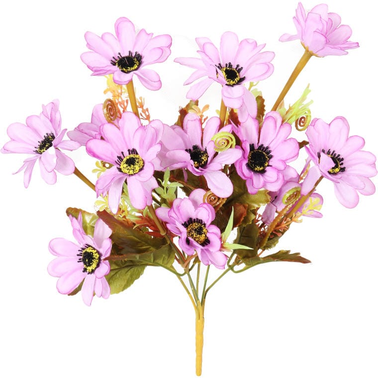 Bukiecik 12 margaretek w kolorze wrzosowym z dodatkami