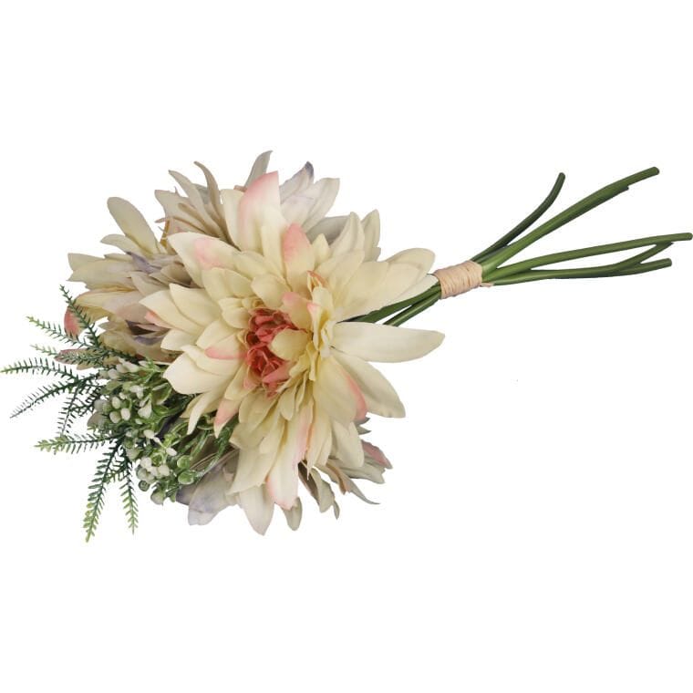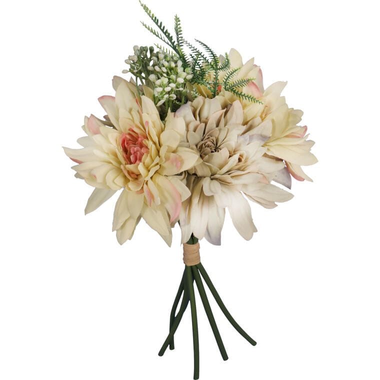 Bukiecik 5 sztucznych dalii z dodatkami o długości 48 cm to wyjątkowa dekoracja, która idealnie sprawdzi się w każdej aranżacji wnętrza. Dzięki doskonałej jakości materiałów, z których wykonano kwiaty, wyglądają one jak żywe, wprowadzając do pomieszczenia naturalny urok i świeżość. Kompozycja z dalii z dodatkami świetnie nadaje się zarówno jako samodzielna ozdoba, jak i element większych dekoracji. Bukiecik ten może być wykorzystany do dekoracji domowych, biurowych, a także podczas różnorodnych uroczystości, dodając elegancji i stylu Twojemu otoczeniu.