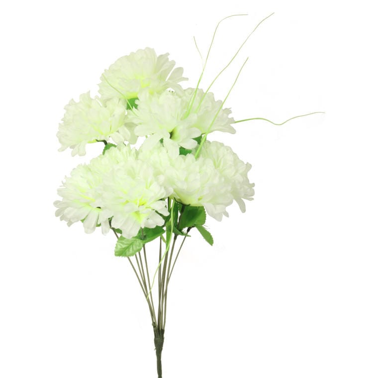 Sztuczny bukiet dziesięciu chryzantem z trawką w kolorze białym to elegancka dekoracja, która perfekcyjnie imituje żywe kwiaty dzięki zastosowaniu wysokiej jakości materiałów. O wysokości 58 cm i średnicy 14 cm, bukiet idealnie sprawdzi się jako samodzielna ozdoba lub jako część większej kompozycji. Doskonale udekoruje miejsca pamięci podczas Święta Wszystkich Świętych, wprowadzając do przestrzeni harmonię i spokój. Wybierz ten wyjątkowy bukiet, aby dodać klasycznego uroku do swojego wnętrza.