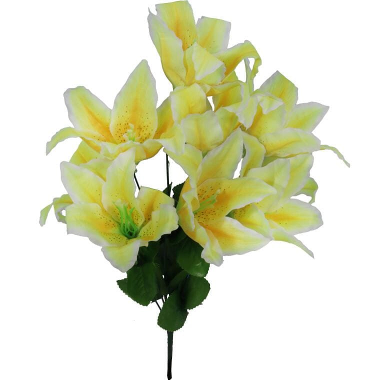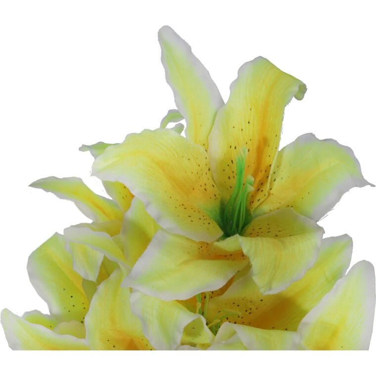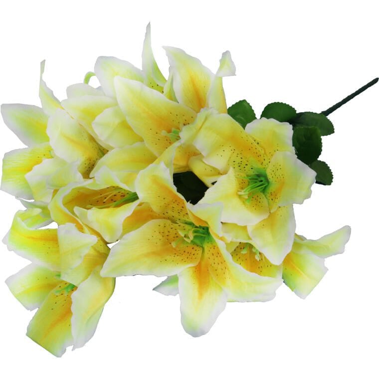 Bukiet sztucznych kwiatów z 10 lilii to elegancka dekoracja, która wniesie do Twojego wnętrza subtelność i piękno naturalnych kwiatów. Wysoka jakość materiału sprawia, że lilie do złudzenia przypominają żywe rośliny, co czyni ten bukiet doskonałym wyborem zarówno jako samodzielna ozdoba, jak i element większej kompozycji florystycznej. Idealnie sprawdzi się w salonie, biurze czy jako dekoracja na wyjątkowe okazje, dodając wnętrzu świeżości i elegancji. Bukiet o wysokości 44 cm stanowi wyrazisty akcent, który z łatwością dopasuje się do różnych aranżacji wnętrz.