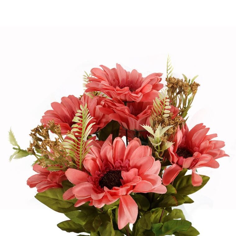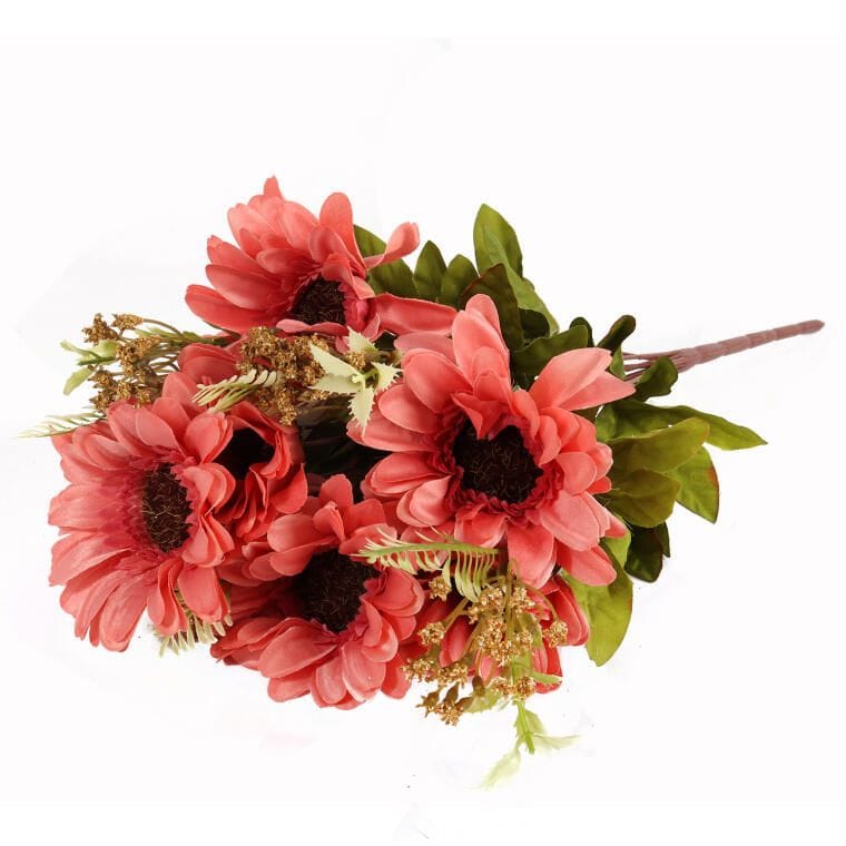 Przedstawiamy wyjątkowy sztuczny bukiet składający się z 11 przepięknych gerber, które zachwycają swoim naturalnym wyglądem oraz wysoką jakością wykonania. Ten niezwykle elegancki bukiet doskonale imituje żywe kwiaty, co sprawia, że jest idealnym rozwiązaniem do każdego wnętrza, nadając mu świeżości i stylu. Wysokiej klasy materiały użyte do produkcji bukietu gwarantują trwałość oraz estetyczny wygląd przez długi czas. Mierzący 50 cm bukiet świetnie sprawdzi się jako samodzielna dekoracja, a także jako część większej kompozycji florystycznej, wprowadzając do Twojego otoczenia harmonię i elegancję. Udekoruj swoje przestrzenie tym wyjątkowym sztucznym bukietem Gerber, ciesząc się jego urodą bez konieczności pielęgnacji.