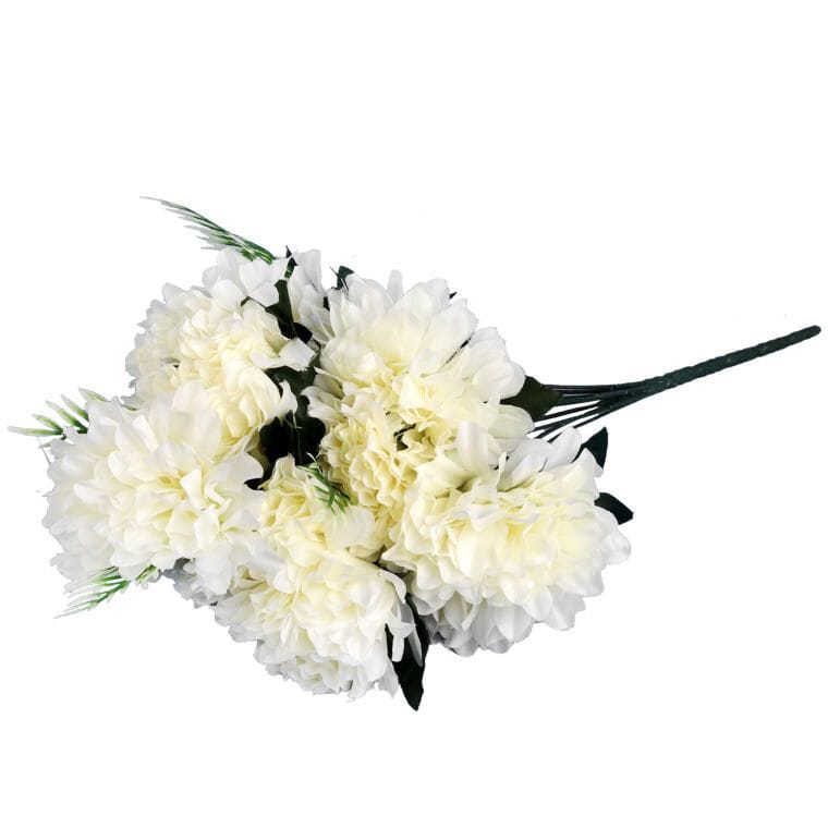 Bukiet 12 sztucznych chryzantem to elegancka i trwała dekoracja, która doskonale imituje naturalne kwiaty. Dzięki wysokiej jakości materiałom i dbałości o detale, kompozycja zachwyca realistycznym wyglądem i intensywną barwą. Świetnie sprawdzi się jako ozdoba wnętrz, kompozycji florystycznych oraz dekoracja nagrobna, podkreślając wyjątkowy charakter każdej aranżacji.