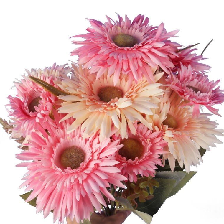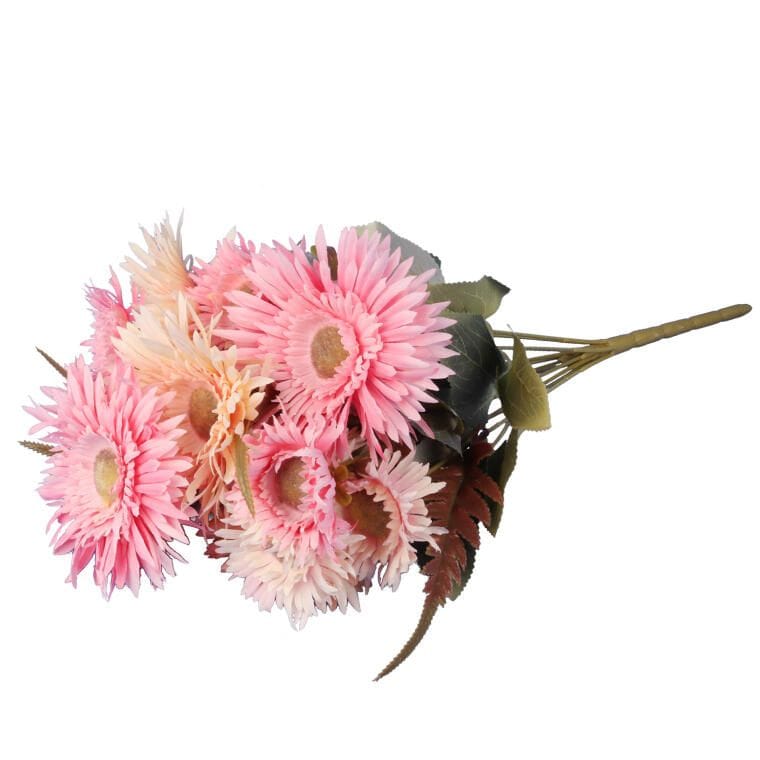 Sztuczny bukiet 12 gerber o wysokości 48 cm to doskonały wybór dla każdego, kto pragnie wprowadzić do swojego wnętrza świeżość i kolor. Wykonany z materiałów najwyższej jakości, ten efektowny bukiet do złudzenia przypomina żywe kwiaty, co sprawia, że jest idealny jako samodzielna dekoracja lub wspaniała część większych kompozycji florystycznych. Jego intensywne barwy oraz naturalny wygląd znakomicie uzupełnią każde wnętrze, dodając mu charakteru i elegancji. Bukiet gerber świetnie sprawdzi się zarówno w domowych aranżacjach, jak i w przestrzeniach biurowych, tworząc przytulną atmosferę przez cały rok. Wybierz ten wyjątkowy bukiet, aby cieszyć się nieprzemijającym pięknem i świeżością kwiatów bez konieczności ich pielęgnacji.