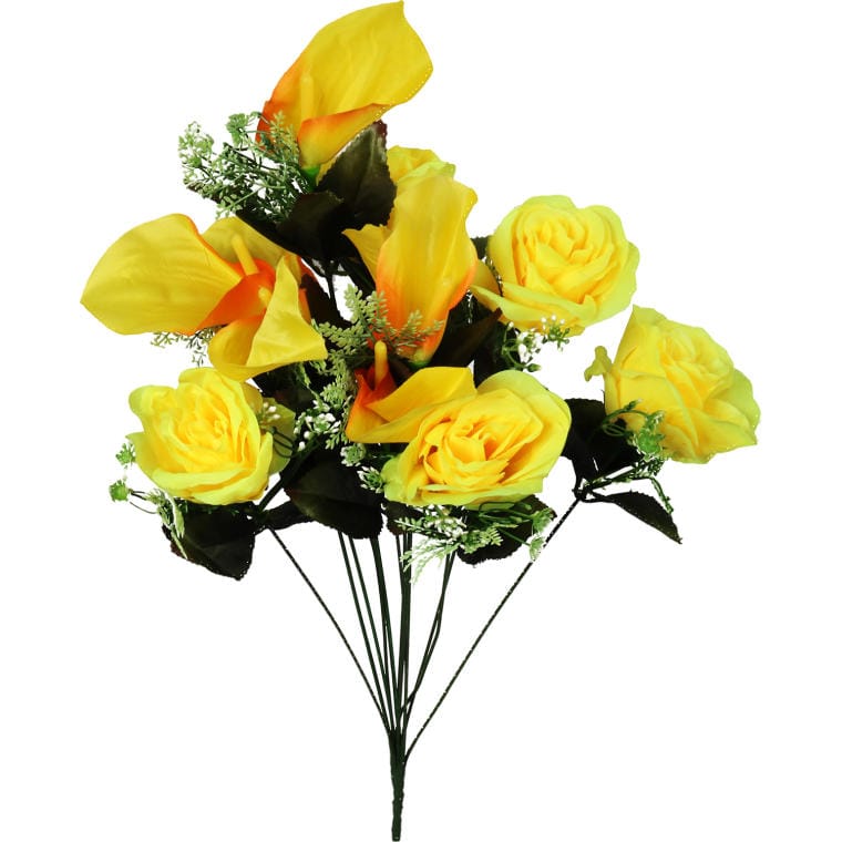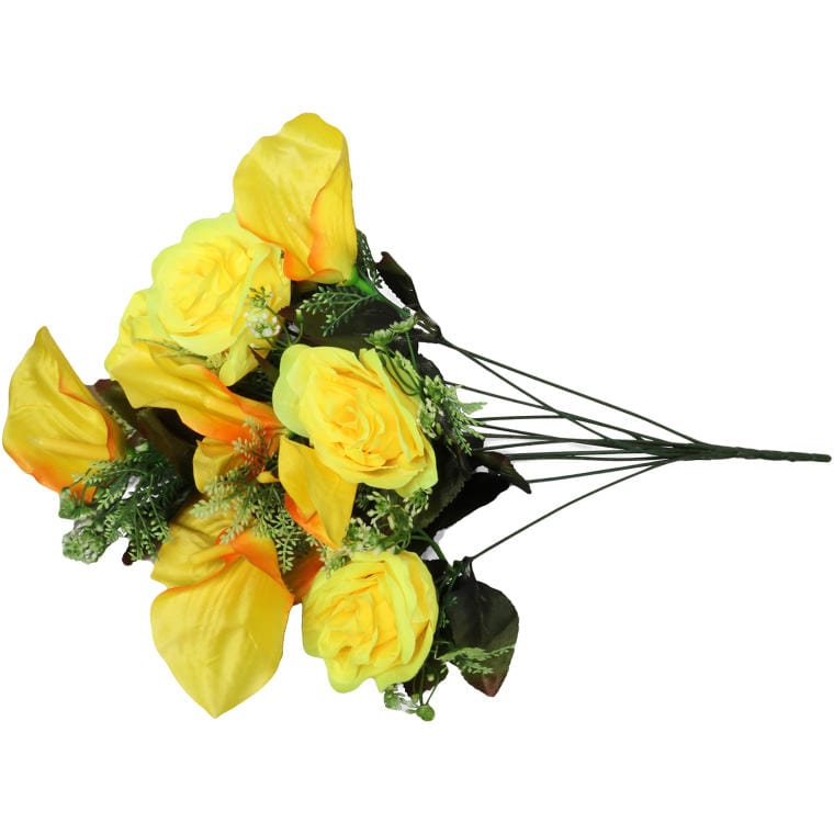 Bukiet 12 kwiatów mix róża i lotos z dodatkami w kolorze żółtym