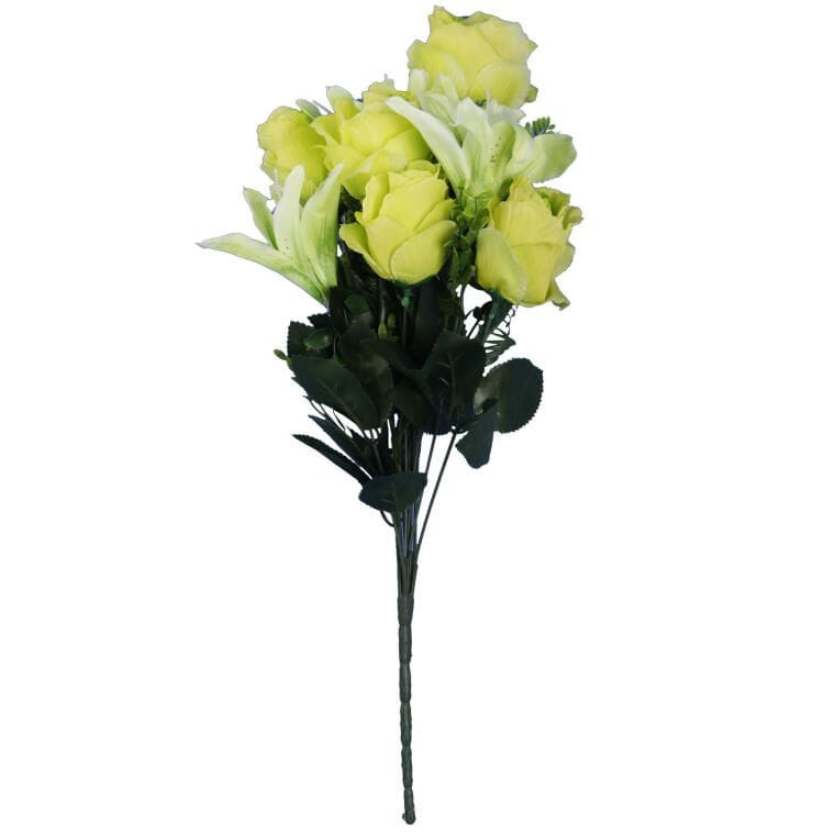 Ekskluzywny sztuczny bukiet 12 róż z lilią to perfekcyjna imitacja naturalnych kwiatów, wykonana z wysokiej jakości materiałów, które nadają im realistyczny wygląd i trwałość. Idealnie sprawdzi się jako elegancka dekoracja nagrobna, podkreślając wyjątkowy charakter miejsc pamięci w czasie święta Wszystkich Świętych. Dzięki starannemu wykonaniu i dopracowanym detalom bukiet prezentuje się niezwykle efektownie zarówno jako samodzielna ozdoba, jak i element większej kompozycji. Jego imponująca wysokość 56 cm zapewnia doskonałą widoczność i estetyczny wygląd w każdej aranżacji.