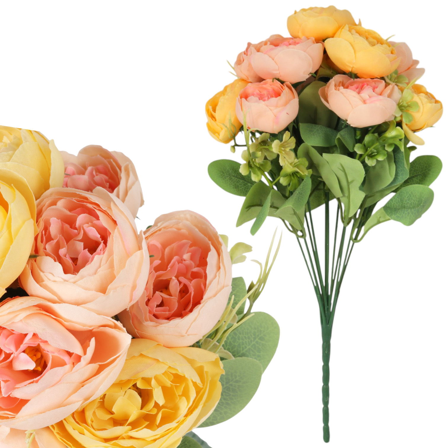 BUKIET 12 PIWONII PEONII KOMPOZYCJA DO WAZONU W KOLORACH ŻÓŁTYCH 36 CM