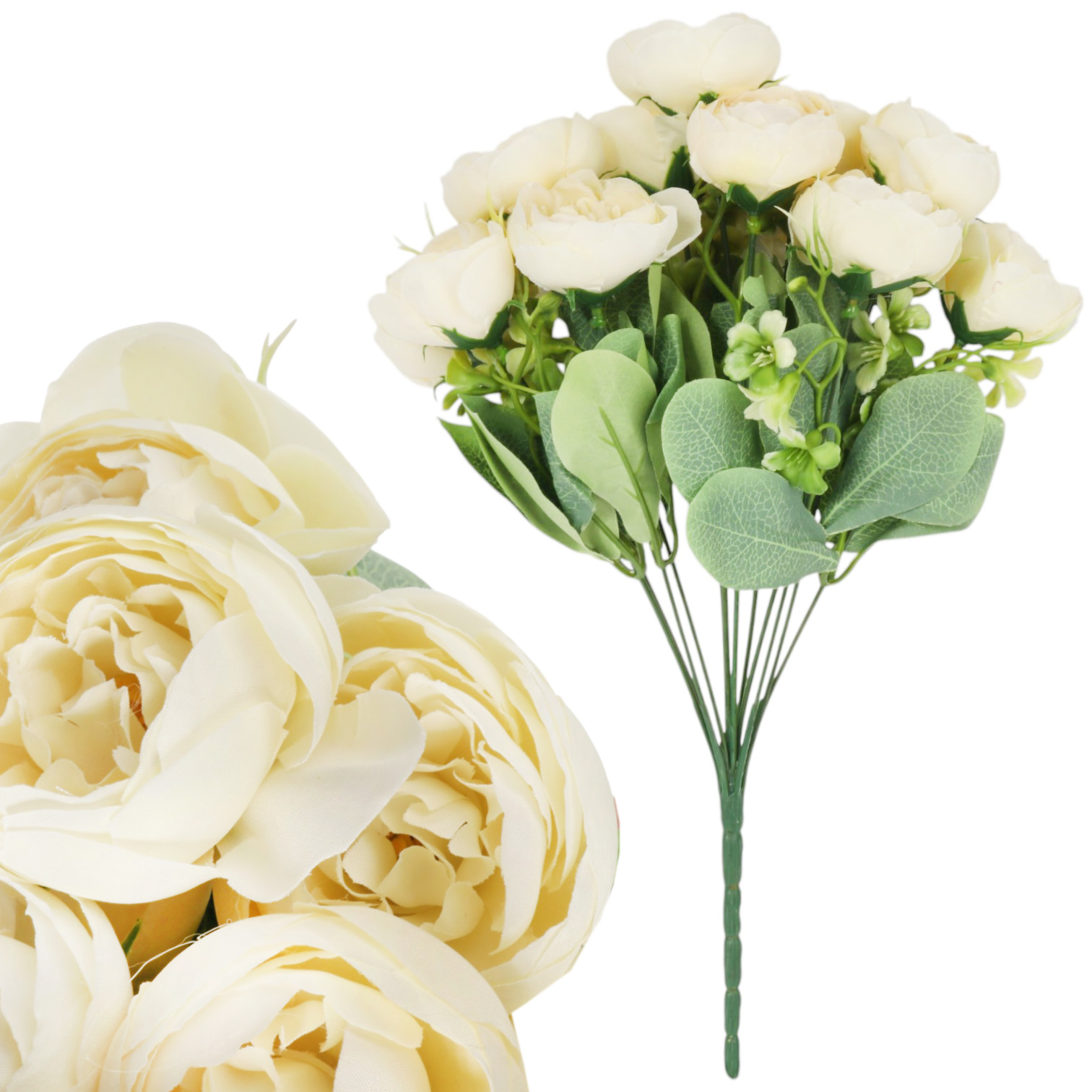 BUKIET 12 PIWONII PEONII KOMPOZYCJA DO WAZONU W KOLORZE KREMOWYM 36 CM
