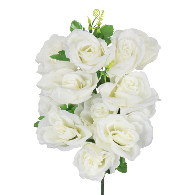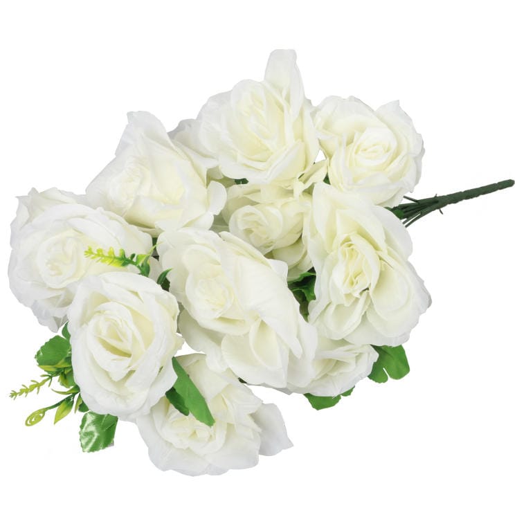 Bukiet 12 rozwiniętych róż w klasycznym, eleganckim białym kolorze to idealna ozdoba, która wniesie nutę delikatności i szyku do każdego wnętrza. O wysokości 56 cm, te sztuczne róże doskonale oddają urok naturalnych kwiatów, dzięki czemu stanowią znakomitą dekorację na różne okazje – od uroczystych wydarzeń po codzienne aranżacje. Każda róża jest starannie wykonana z trwałych materiałów, co zapewnia długotrwały efekt piękna bez potrzeby pielęgnacji. Idealny wybór do salonu, na komodę, jako dekoracja stołu, a także na prezent, który oczaruje każdego miłośnika klasycznych kompozycji kwiatowych.