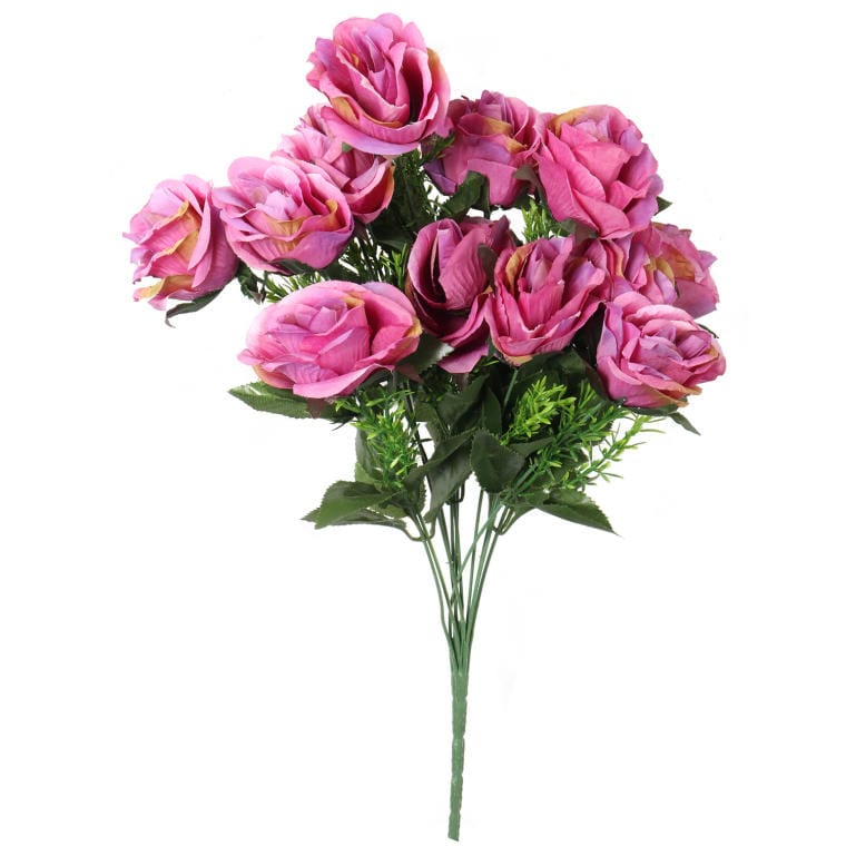 Bukiet 12 ciemno-różowych róż z efektownymi dodatkami, o wysokości 50 cm, to elegancka kompozycja, która wprowadza do każdego wnętrza odrobinę romantyzmu i szyku. Ciemno-różowe róże symbolizują miłość, wdzięk i pasję, tworząc harmonijną całość, która przyciąga wzrok i emanuje pozytywną energią. Wykonane z najwyższej jakości materiałów, te sztuczne kwiaty wyglądają jak świeżo ścięte, co sprawia, że doskonale nadają się jako ozdoba stołu, komody czy parapetu, nadając przestrzeni przytulny i wyrafinowany charakter. Bukiet nie wymaga żadnej pielęgnacji, co czyni go idealnym wyborem dla osób ceniących trwałość oraz wygodę. Ciemno-różowe róże pięknie komponują się z innymi kwiatami i dodatkami, zarówno w nowoczesnych, jak i klasycznych aranżacjach, wprowadzając do wnętrza elegancję i styl. To także znakomity pomysł na prezent, który z pewnością zachwyci swoim pięknym wyglądem i długotrwałą świeżością, idealnie nadając się na każdą szczególną okazję.