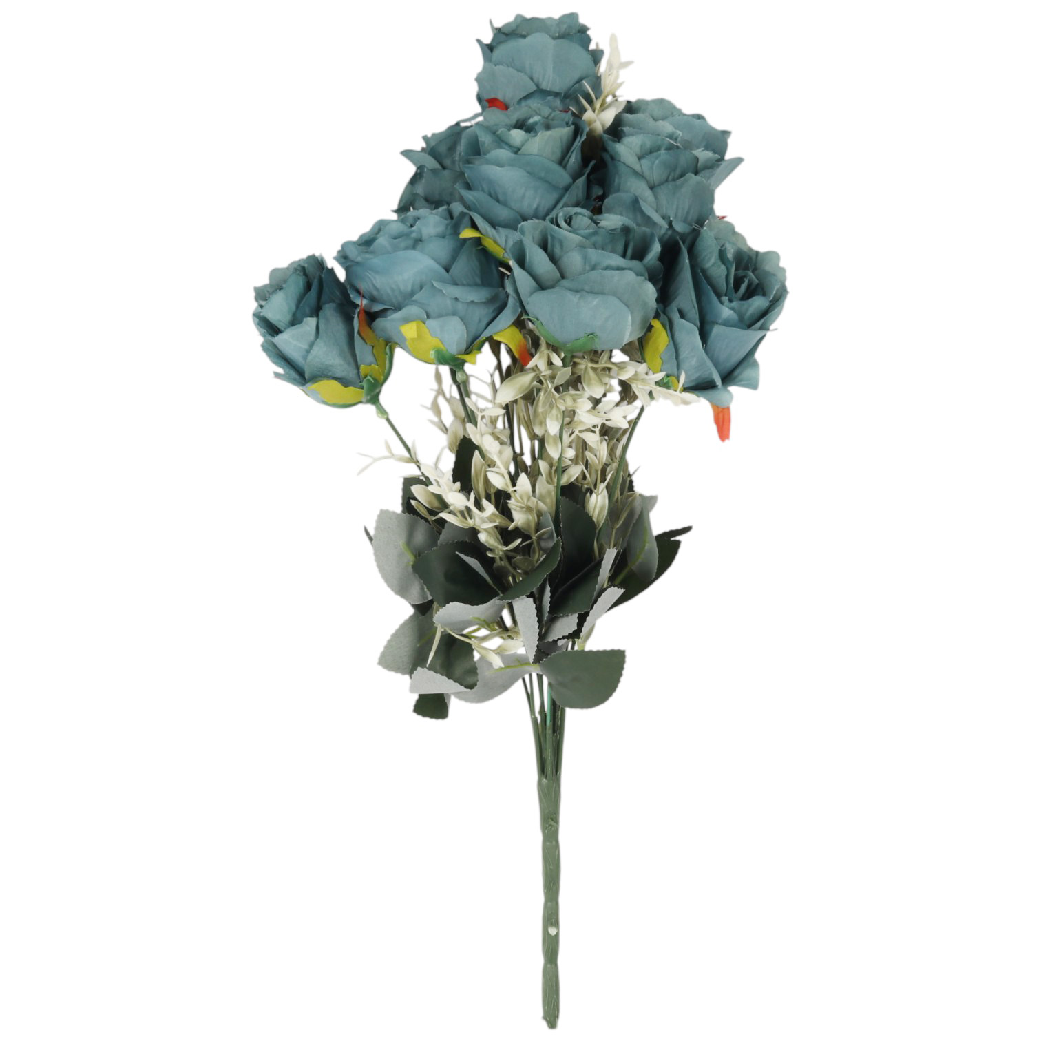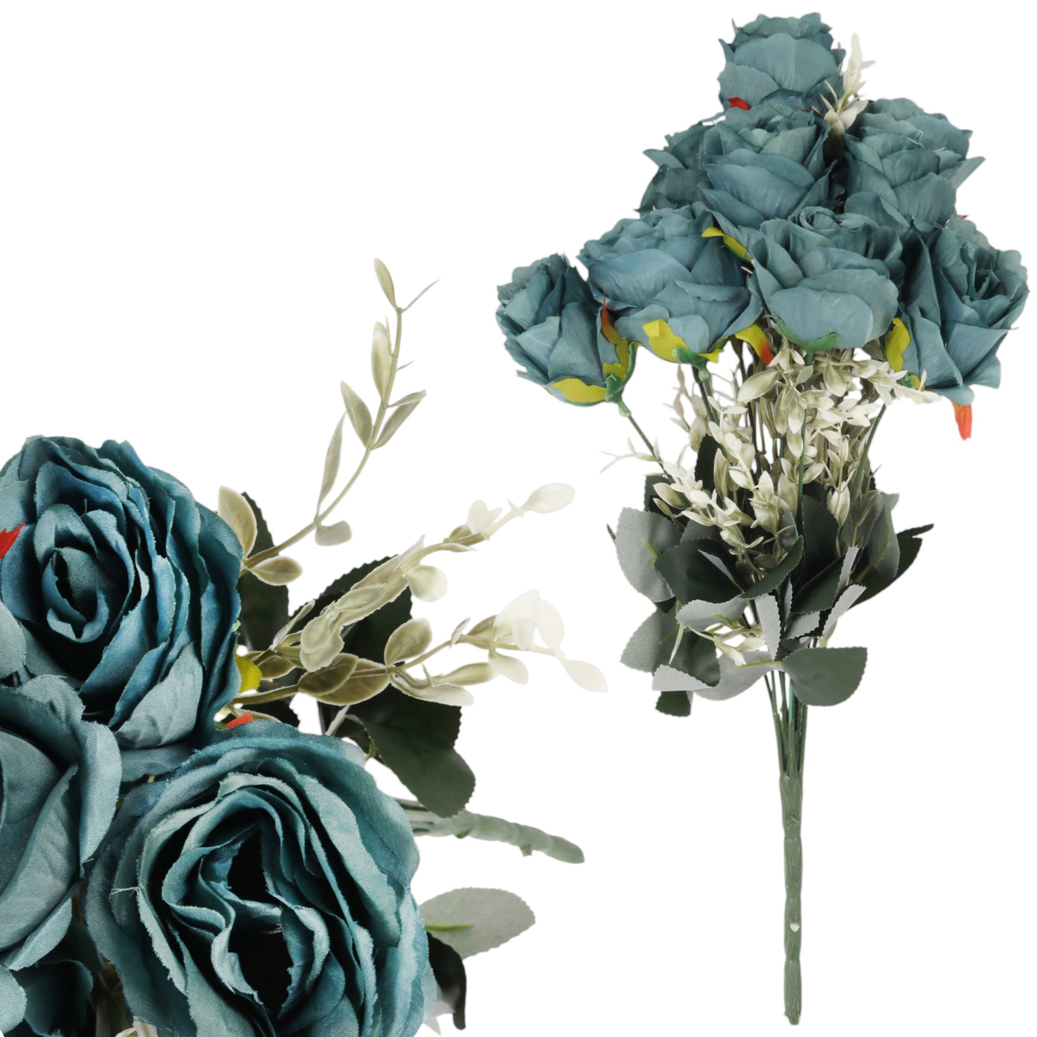BUKIET 12 RÓŻ Z DODATKAMI sztuczne kwiaty do wazonu KOMPOZYCJA niebieska 48 cm