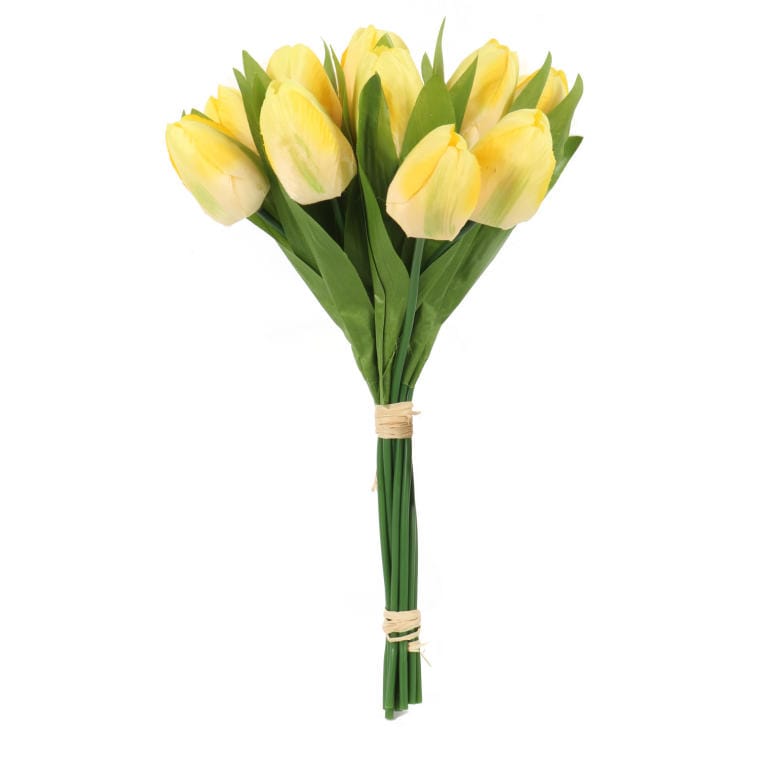 Bukiet 12 Sztucznych Tulipanów w Naturalnym Odcieniu Żółtego, Dekoracja Wnętrz, 38 cm