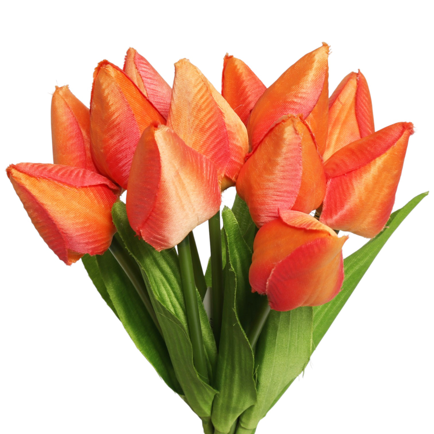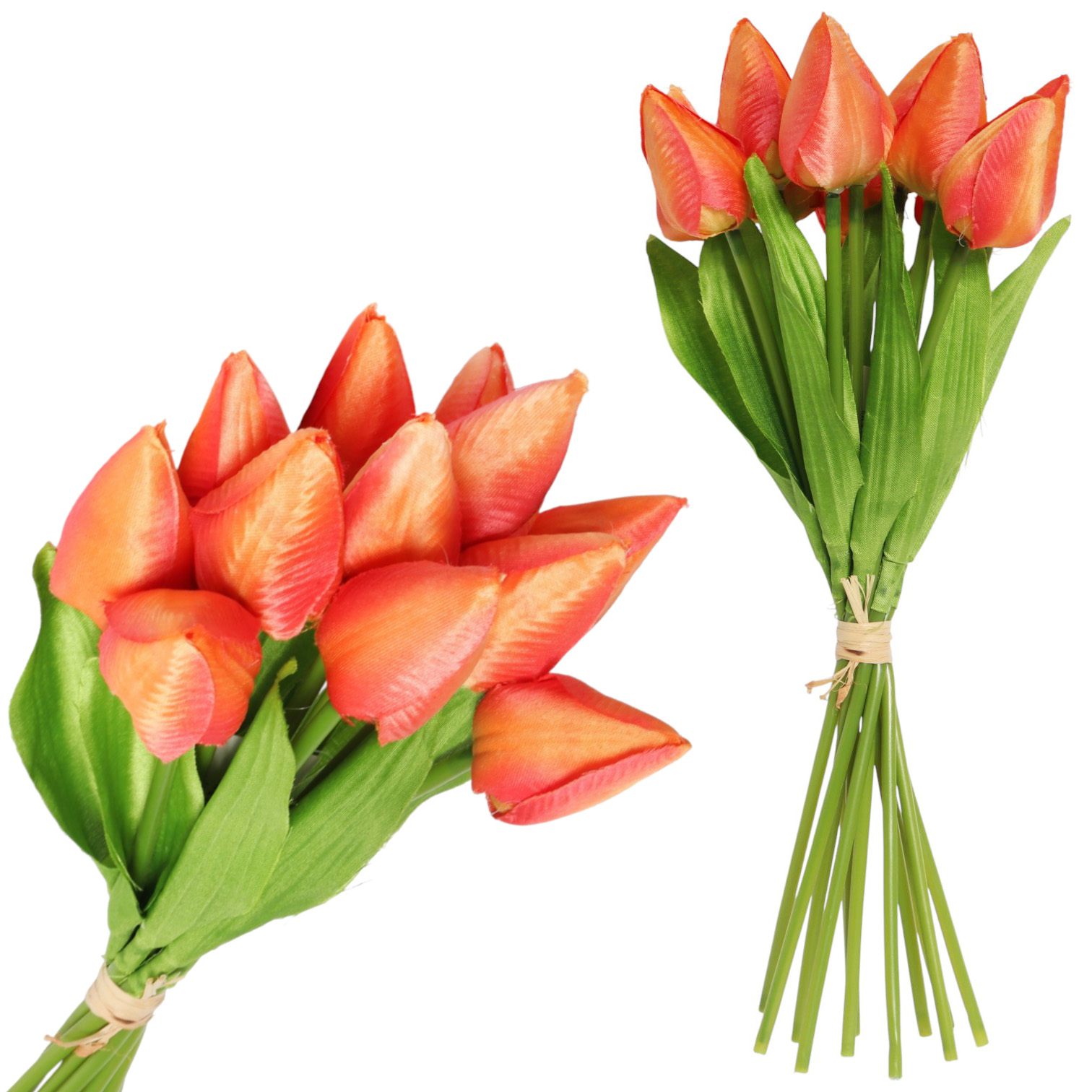 Bukiet 12 TULIPANÓW W PĘCZKU Z RAFIĄ 32 cm pomarańczowe