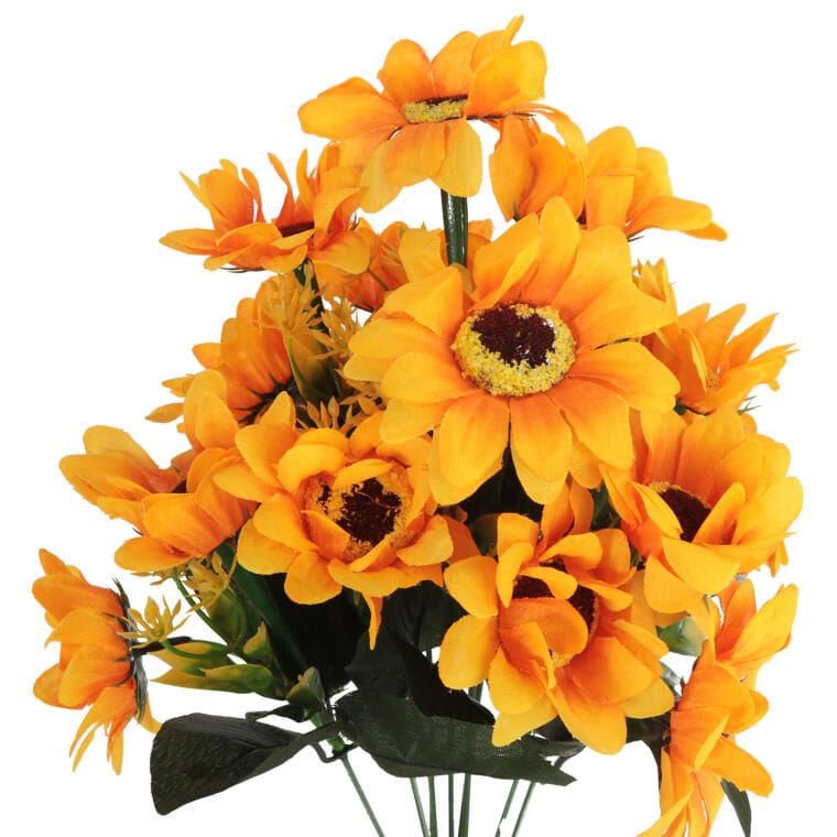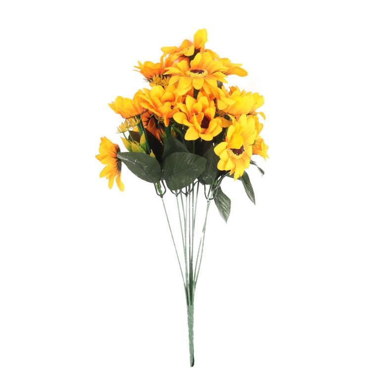 Kwiat sztuczny bukiet 18 słoneczników to doskonały sposób na wprowadzenie radosnego akcentu do każdego wnętrza. Dzięki zastosowaniu wysokiej jakości materiałów, ten bukiet emanuje naturalnym urokiem, a jego realistyczny wygląd sprawia, że trudno go odróżnić od prawdziwych kwiatów. Idealnie nadaje się jako samodzielna dekoracja lub jako część większych kompozycji, doskonale uzupełniając wystrój Twojego domu, biura czy przestrzeni eventowej. Jego długość 42 cm czyni go efektownym elementem aranżacyjnym, który wprowadza pozytywną energię i letni klimat do każdego otoczenia. Wybierz ten wyjątkowy bukiet, aby stworzyć przytulną i zachwycającą atmosferę, która będzie cieszyć oko przez długi czas.