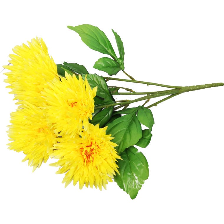 Bukiet pięciu astrów w kolorze żółtym o długości 50 cm i średnicy 16 cm to niezwykle efektowna dekoracja, która wprowadzi do każdego wnętrza radosny i słoneczny nastrój. Te starannie wykonane kwiaty idealnie odwzorowują naturalny wygląd astrów, co sprawia, że bukiet wygląda jak świeżo zerwane kwiaty z ogrodu. Żółta kolorystyka doskonale symbolizuje radość i optymizm, wnosząc do przestrzeni energię i świeżość.