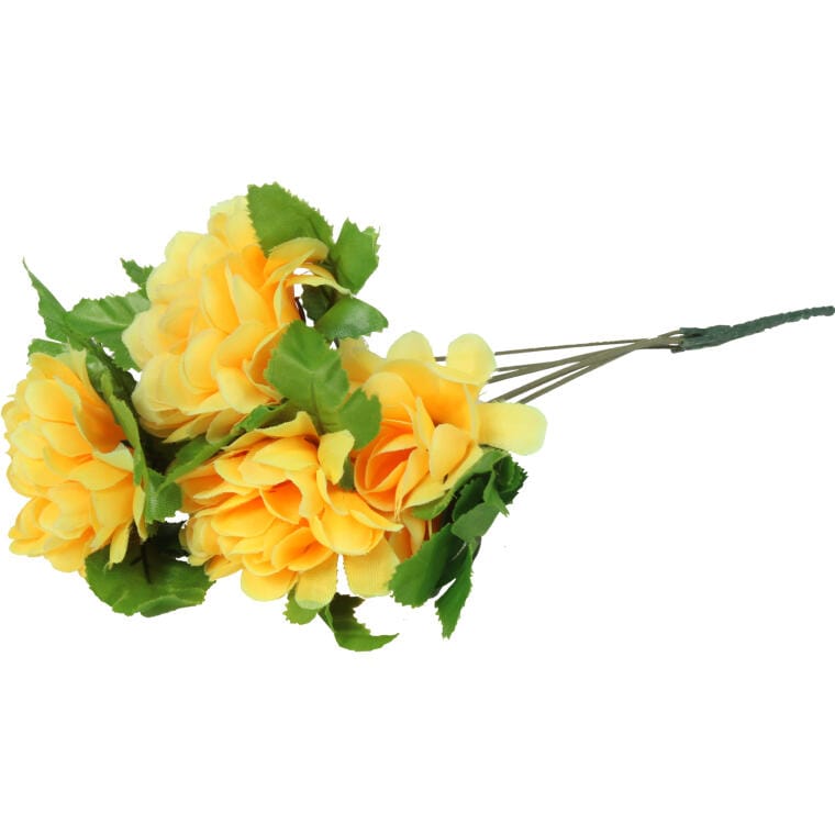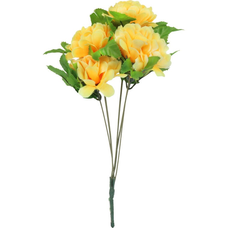 Sztuczny bukiet 5 chryzantem w żółtym kolorze to wyjątkowa dekoracja, która przyciąga uwagę swoją estetyką i naturalnym wyglądem. Dzięki wysokiej jakości materiałom, z których został wykonany, kwiaty te do złudzenia przypominają żywe chryzantemy, wprowadzając do wnętrza przyjemną atmosferę. Ten bukiet doskonale sprawdzi się zarówno jako samodzielna ozdoba, jak i część większej kompozycji, idealnie dekorując Twoje miejsca pamięci podczas Święta Wszystkich Świętych. Wysokość 32 cm czyni go praktycznym rozwiązaniem, które łatwo wpasuje się w różnorodne aranżacje, dodając im wyjątkowego uroku. Dzięki trwałości użytych materiałów, bukiet będzie cieszyć oko przez długi czas, będąc niezastąpionym elementem każdej dekoracji.